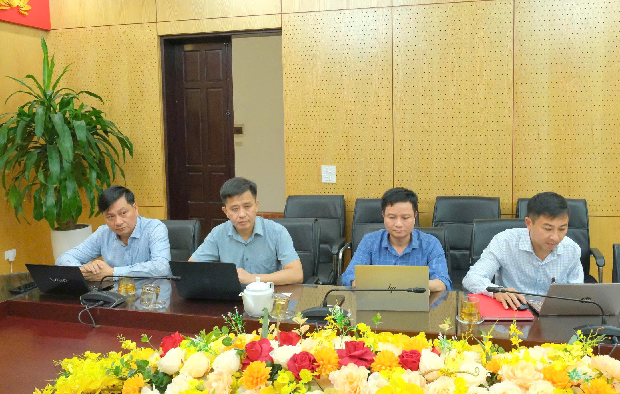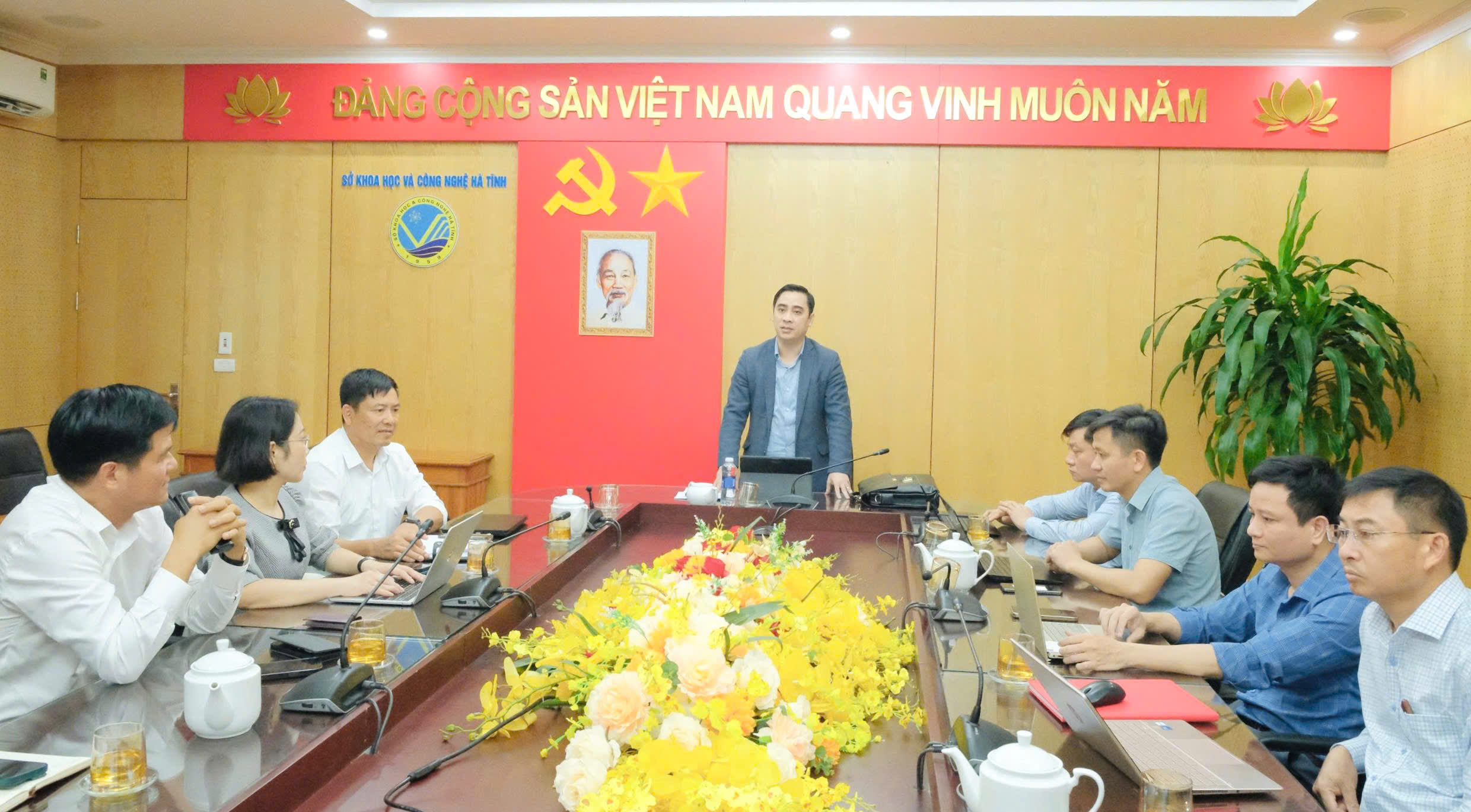 Đồng chí Bùi Phong An - Phó Giám đốc Sở KH và CN cùng các phòng đồng chí Trưởng các phòng chuyên môn thuộc Sở tham dự buổi làm việc