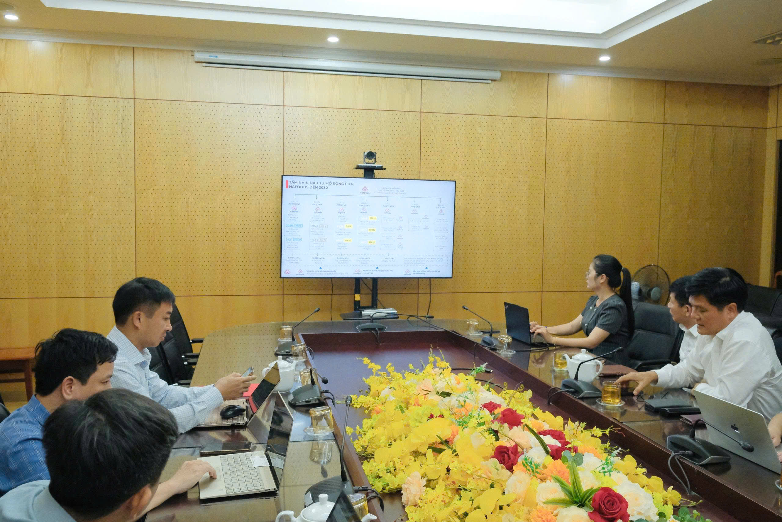 Đồng chí Nguyễn Mạnh Hùng - Tổng Giám đốc Công ty Cổ phần Nafoods Group cùng các thành viên tham gia buổi làm việc