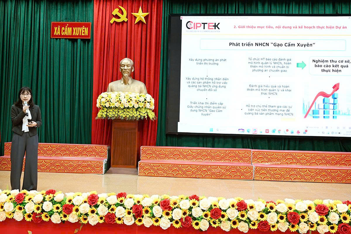 Dự án có mục tiêu xác định thông tin hiện trạng sản xuất, kinh doanh sản phẩm "Gạo Cẩm Xuyên"; tạo lập thành công quyền sở hữu trí tuệ đối với nhãn hiệu chứng nhận “Gạo Cẩm Xuyên”; thiết lập được hệ thống công cụ, phương tiện quản lý và phát triển nhãn hiệu; ứng dụng chuyển đổi số trong quản lý, khai thác và quảng bá nhãn hiệu; hình thành và phát triển kênh tiêu thụ sản phẩm mang nhãn hiệu cho một số đơn vị thí điểm.